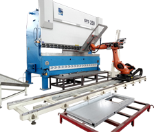 LAG葛世? 机械手自动折弯单元,采用意大利进口技术,可实现自动上下料、自动分选堆垛,机械手自动换模技术保证了小批量多品种的生产和规模化生产一样出色的效率。